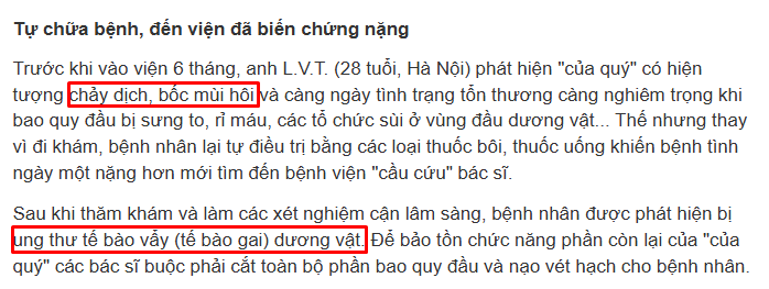 Bạn đã nghe đến trường hợp bị ung thư dương vật do tự chữa dương vật chảy mủ tại nhà chưa?
